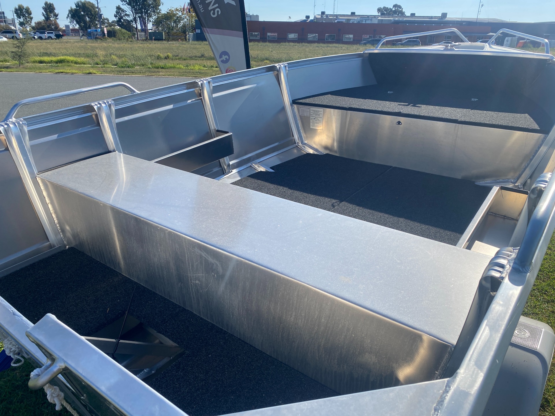 The Busta is one of Australia's favourite open fishing boats - and for good reason. Affordable and high-performing thanks to the famed Blade Hull, the 420 Busta is a great entry-level tinnie. Featuring a front casting platform, open deck with carpeted low floor and side pockets, there is plenty of room to fit your fishing gear and a couple of mates.
