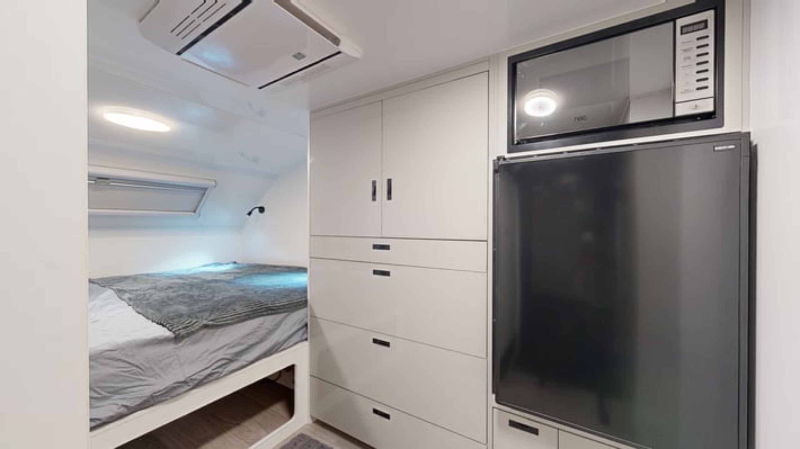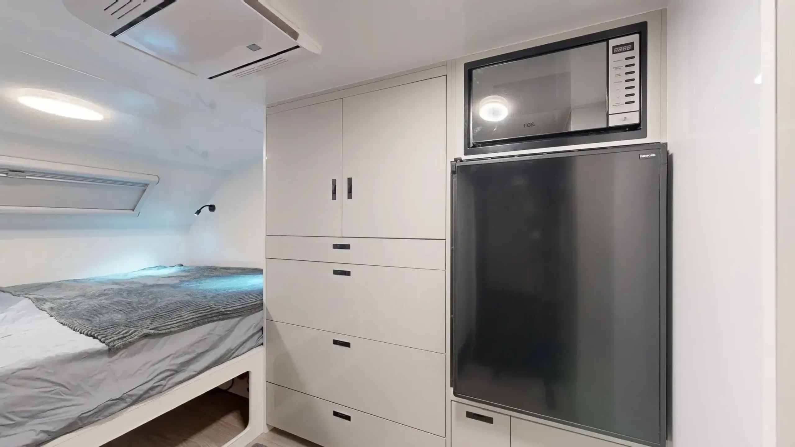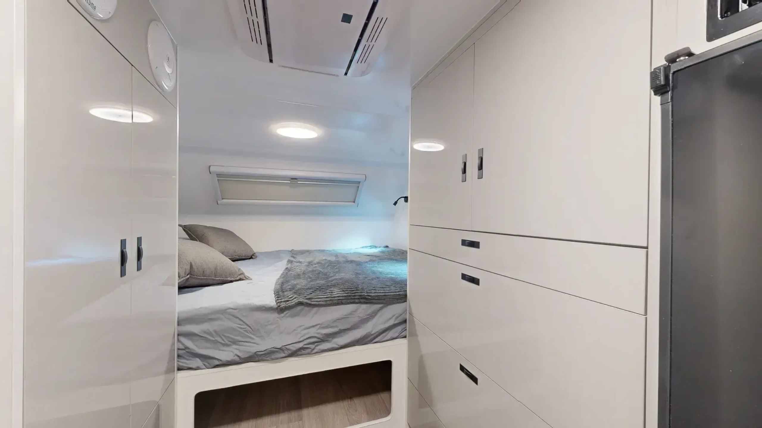 Powered by 200W solar panels and a 30A regulator, it ensures off-grid independence wherever your journey takes you. Inside, CNC-crafted furniture and premium soft-close drawers deliver durability and sophistication, elevating your travel experience to new levels of luxury.